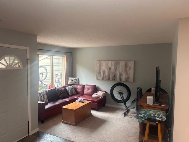Enter this recently renovated top floor furnished condo up two flights of stairs where you will find an enclosed balcony area perfect to relax and keep potted plants throughout the summer. Enter the condo into the open living room and dining room which includes a skylight window directly above. Carpets and tiled flooring are throughout and a partly open concept kitchen that is equipped with a stainless steel French door fridge, dishwasher and an oven/stove. Basic kitchen equipment will be provided but there will be no linens and towels. The in-suite stacked laundry unit is located in the closet just off of the kitchen with some shelving space. Enter the large ‘L’ shaped bathroom at the left side of the hallway with a toilet, sink and shower over the bathtub. The bedroom is located at the end of the hallway with lots of closet space, a bright window overlooking the forestry with a mini living room. Please note that personal belongings shown in the photos will be removed for a tenancy.